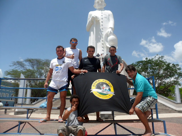 foto com a bandeira do Bike Ação. Realmente ali estava me sentindo realizado